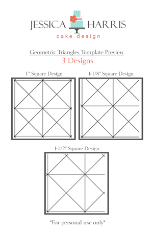 1. This pdf does NOT include information on how cover a cake in fondant or create a flower for the cake. This pdf is ONLY to provide you with the template to create the geometric diamond pattern on the bottom tier. This is not a tutorial…you are buying a lined design (see pictures above to show you what you are buying).